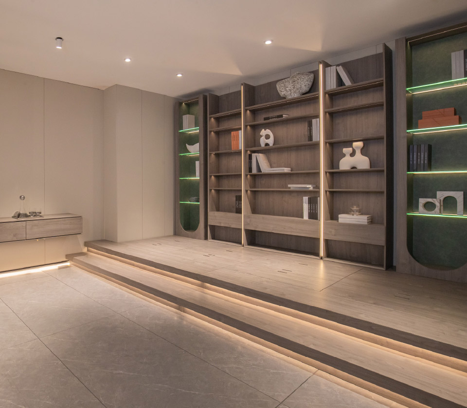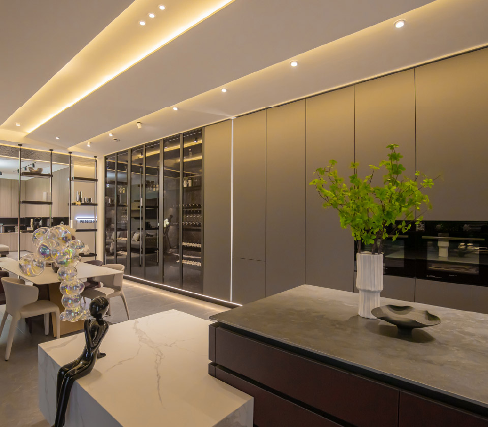 流暢的線條,勾勒干凈利落輪廓,柜體與燈帶的組合,營(yíng)造奢闊有度的空間感。簡(jiǎn)約而不簡(jiǎn)單,每一寸產(chǎn)品肌理,都是對(duì)工藝的用心考量。